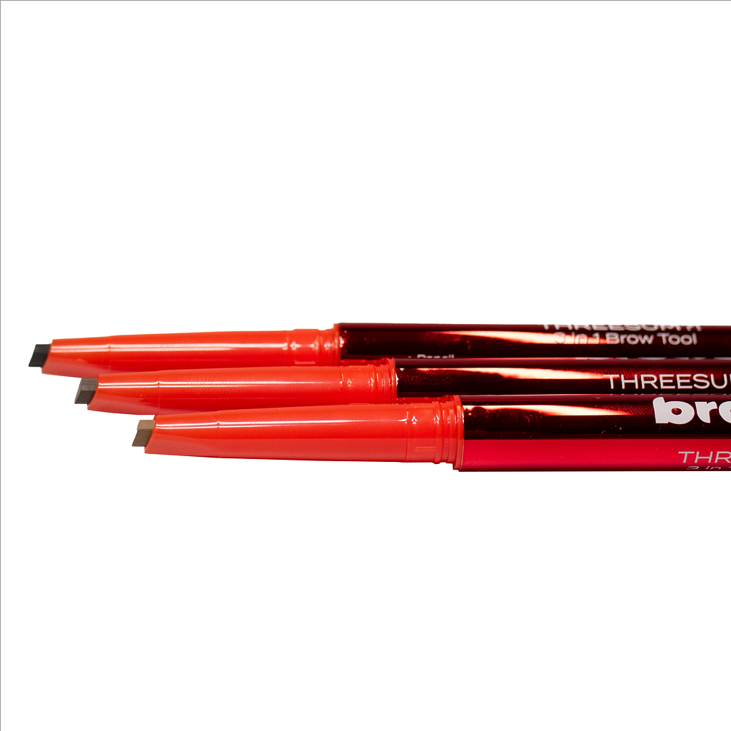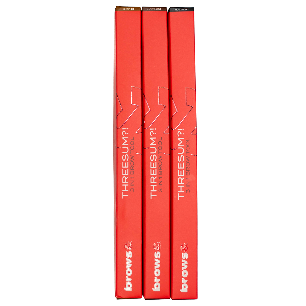 ThreeSum?! is our 3 - in-1 brow tool that features a precision pencil, a clear brow gel (brow stiffy), and a highly pigmented brow powder. Our three-in-one brow tool has everything you need to achieve the perfect brows. Use all components together or separately; ThreeSum?! is the only tool you'll ever need.